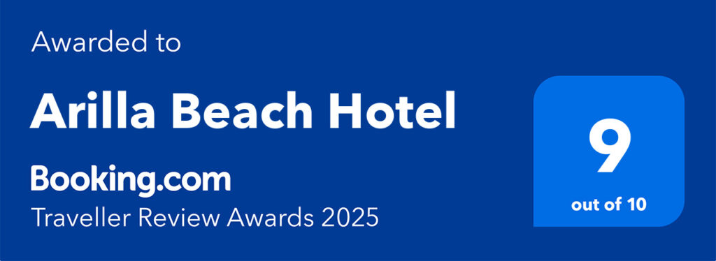 Το ξενοδοχείο Arilla Beach Hotel κατέχει περίοπτη θέση πάνω από την ομώνυμη παραλία. Η ακτή αποτελείται από ψηλή άμμο και έχει πεντακάθαρα κρυστάλλινα νερά. Είναι επιπλέον πολύ ρηχή, αποτελώντας ιδανική επιλογή για οικογένειες με μικρά παιδιά.