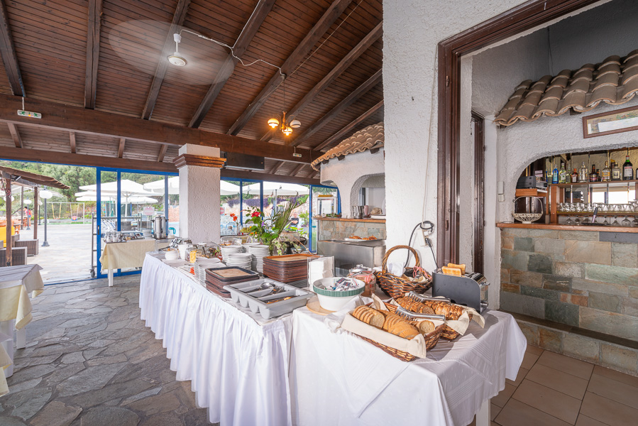 Our hotel has a large hall with a wonderful view where a wide variety of European breakfast buffet is offered daily with the accompaniment of local products. You can enjoy your rich breakfast either indoors or outdoors at one of our tables with even better visibility of the surrounding area. In the same space there is a bar and restaurant. You are given the choice of a wide range of drinks (alcoholic or non-alcoholic), coffee, soft drinks and much more. Of course you can accompany them with a snack from our restaurant e.g. club sandwich, … etc.